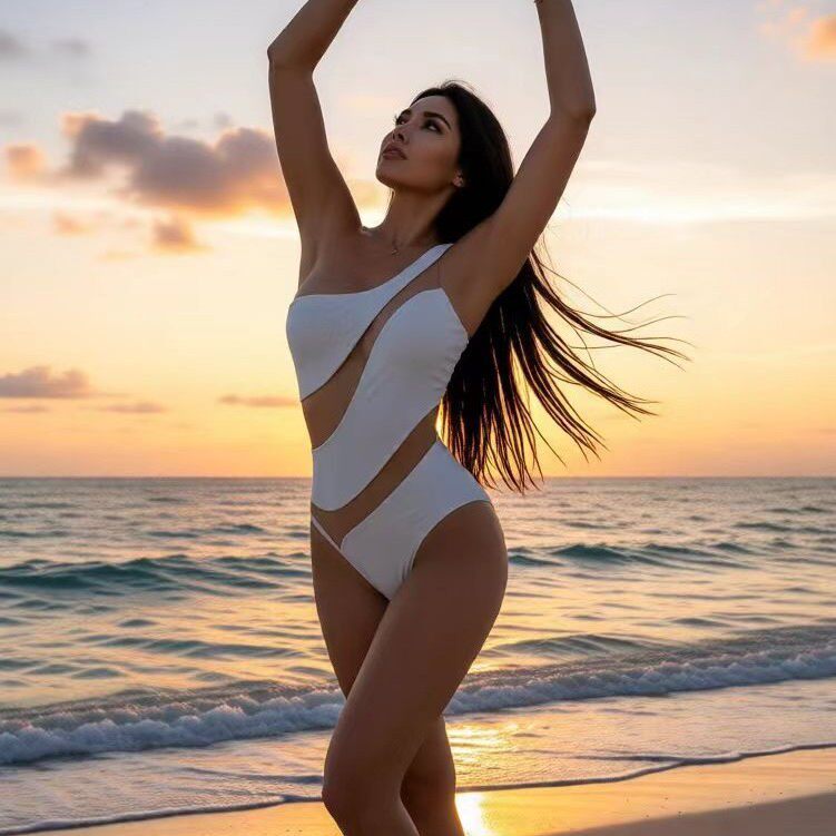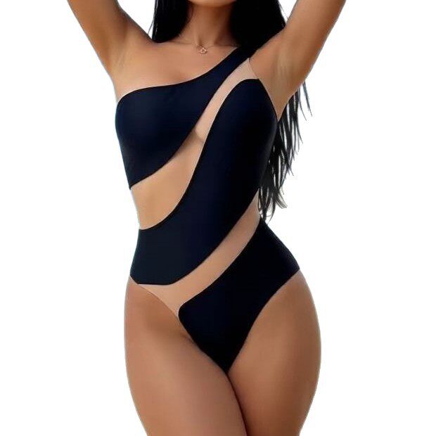 2026 New Sexy Tight Mesh Stitching Hollow One-shoulder One-piece