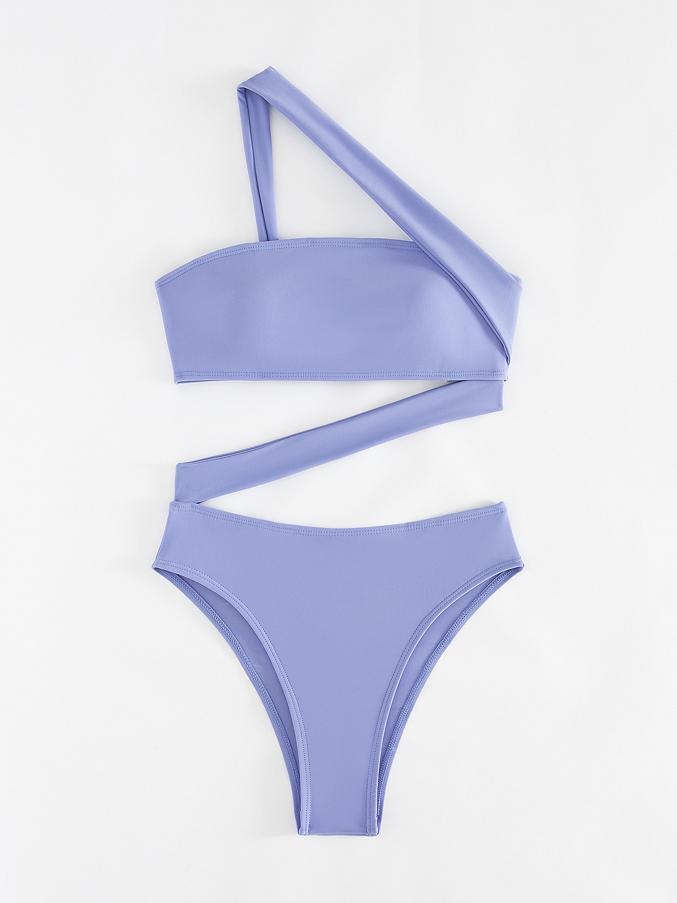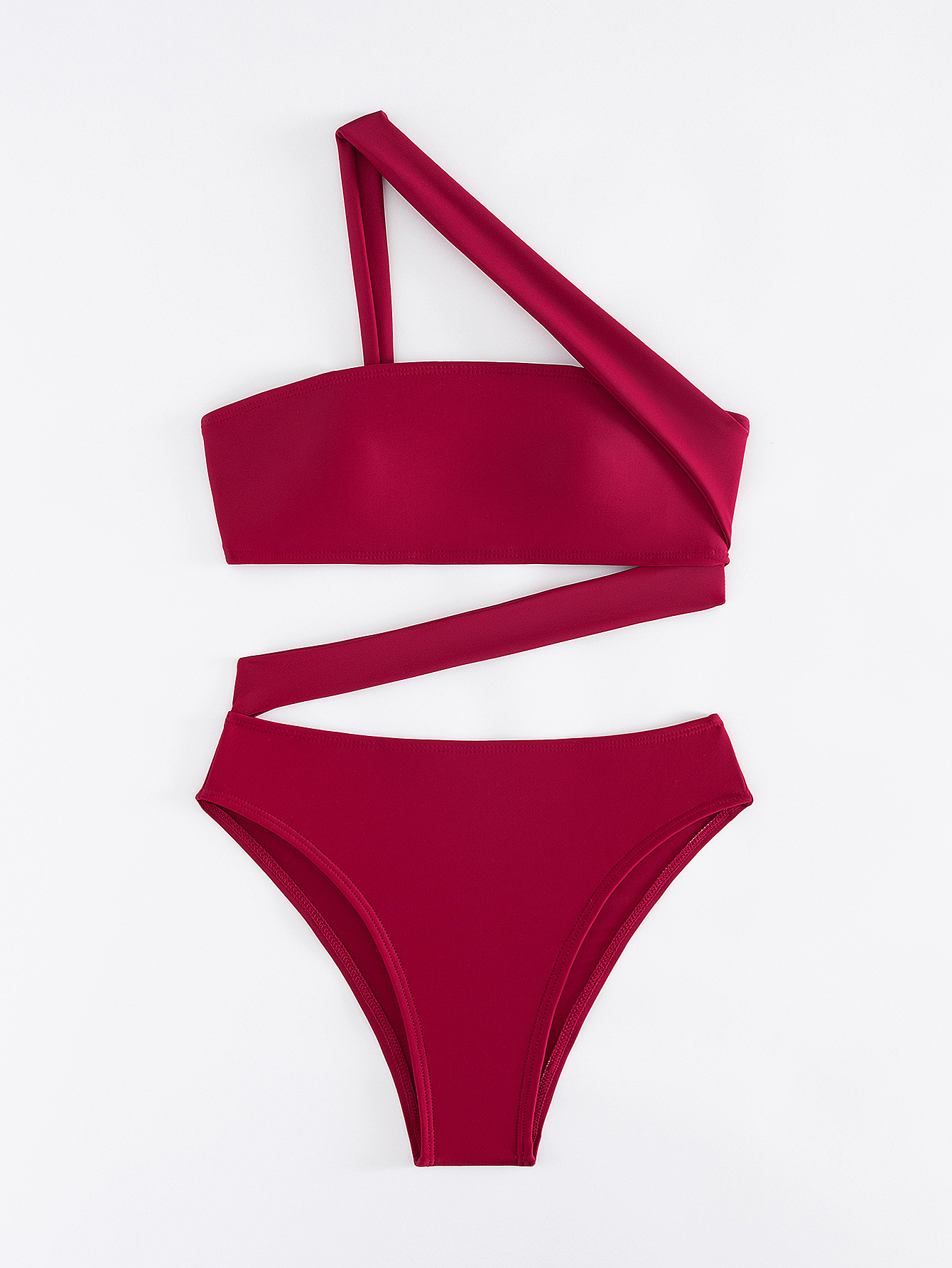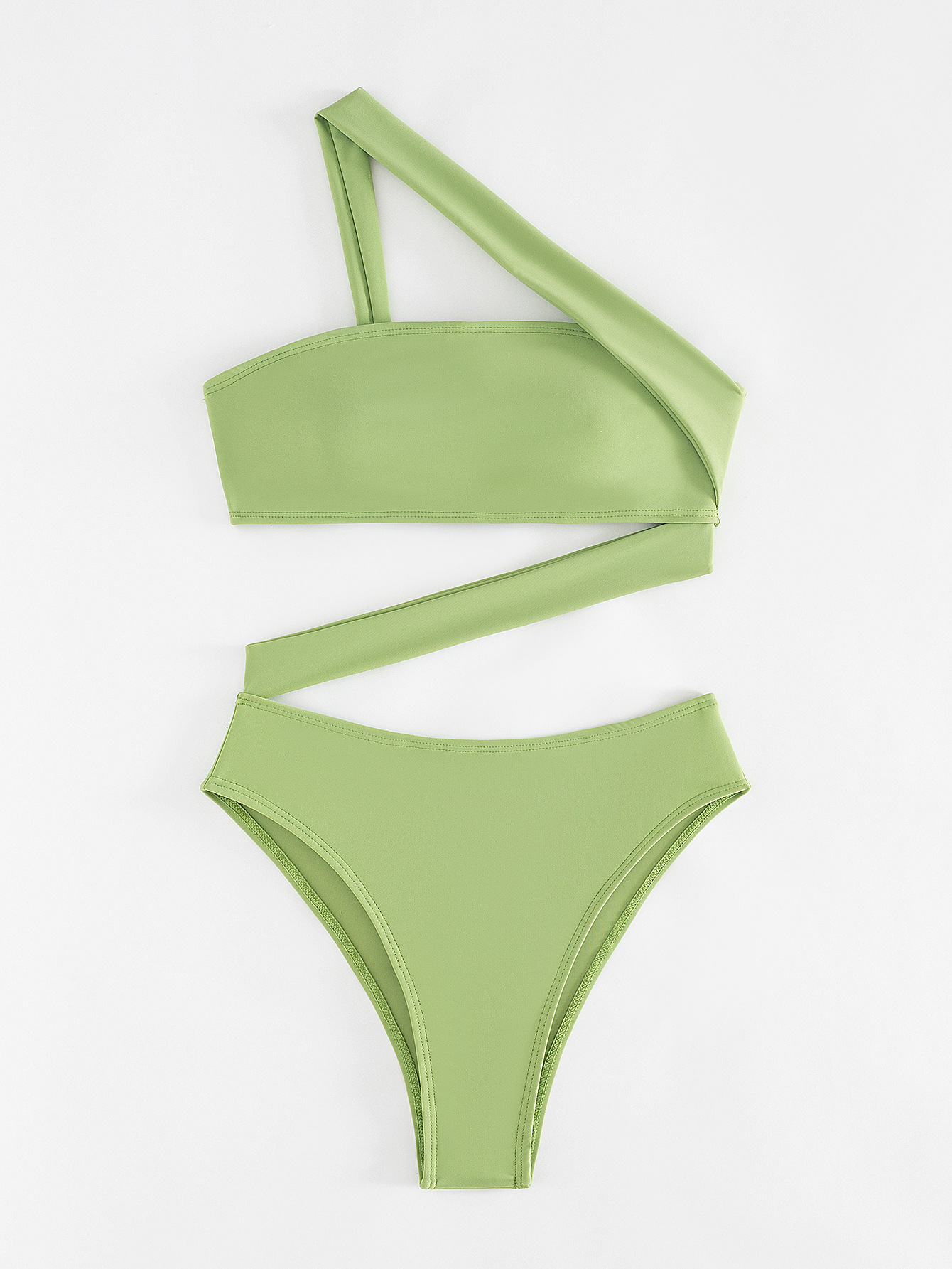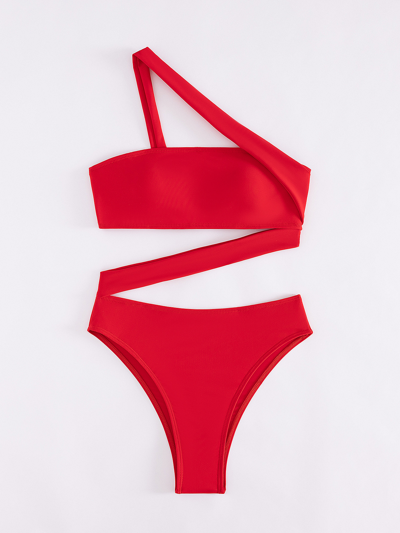 2026 New Solid Color One-piece Swimsuit, Bandeau Straps, Slanted Shoulder One-piece Bikini