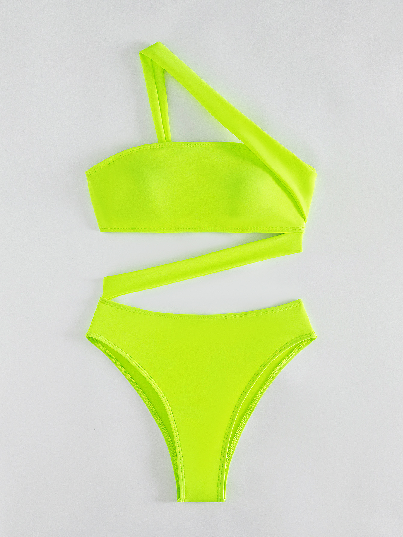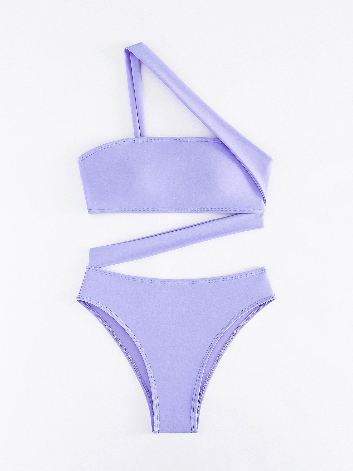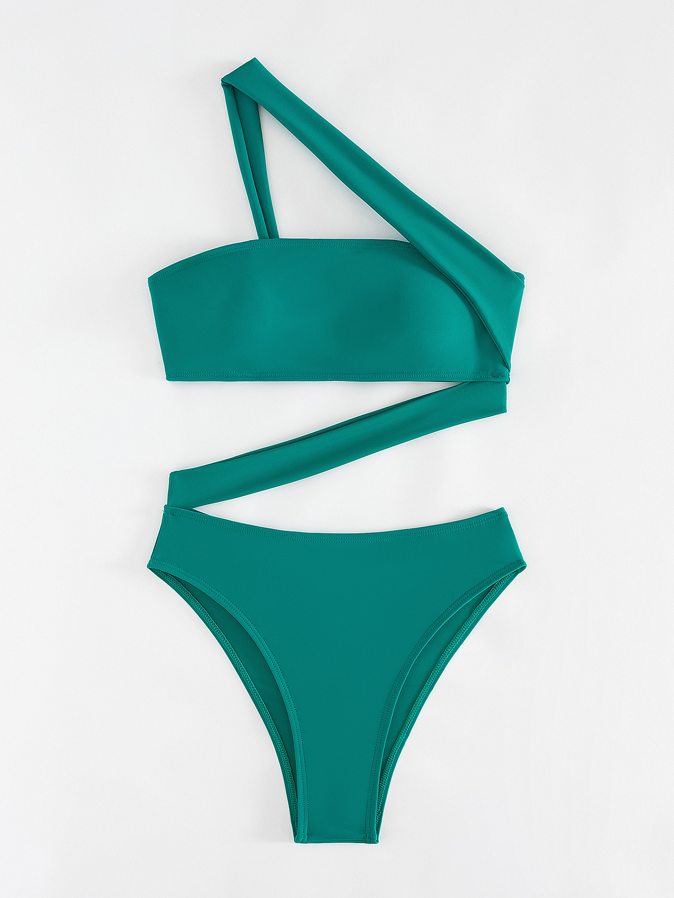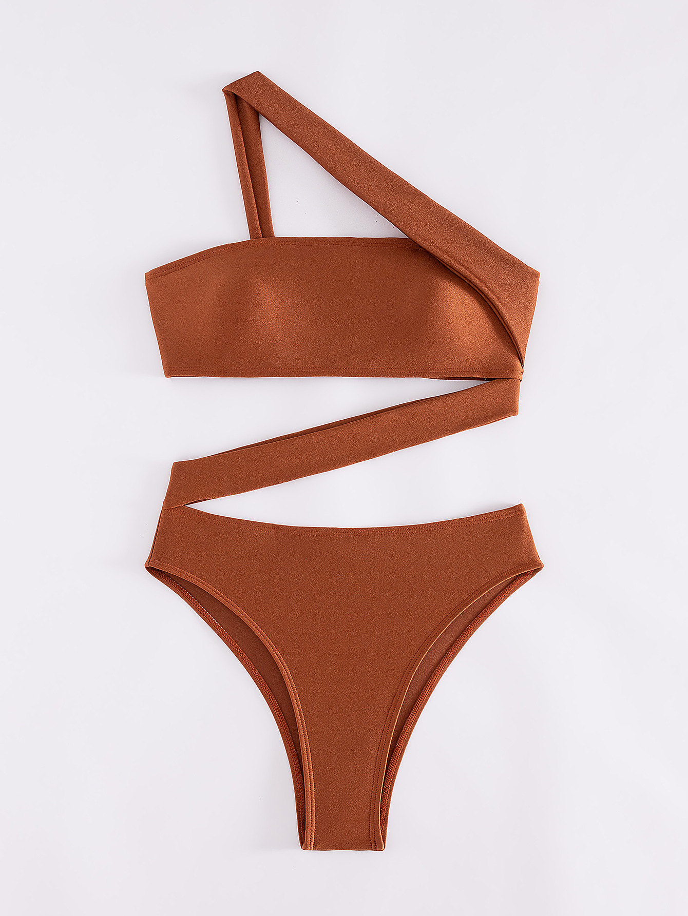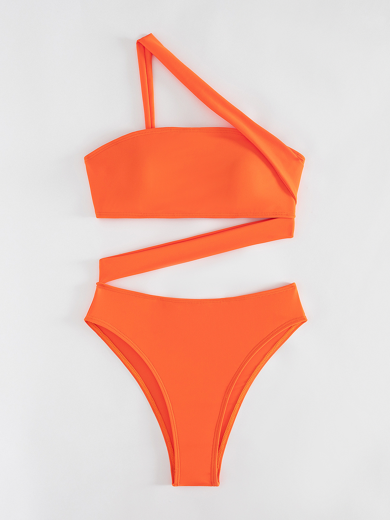 2026 New Solid Color One-piece Swimsuit, Bandeau Straps, Slanted Shoulder One-piece Bikini