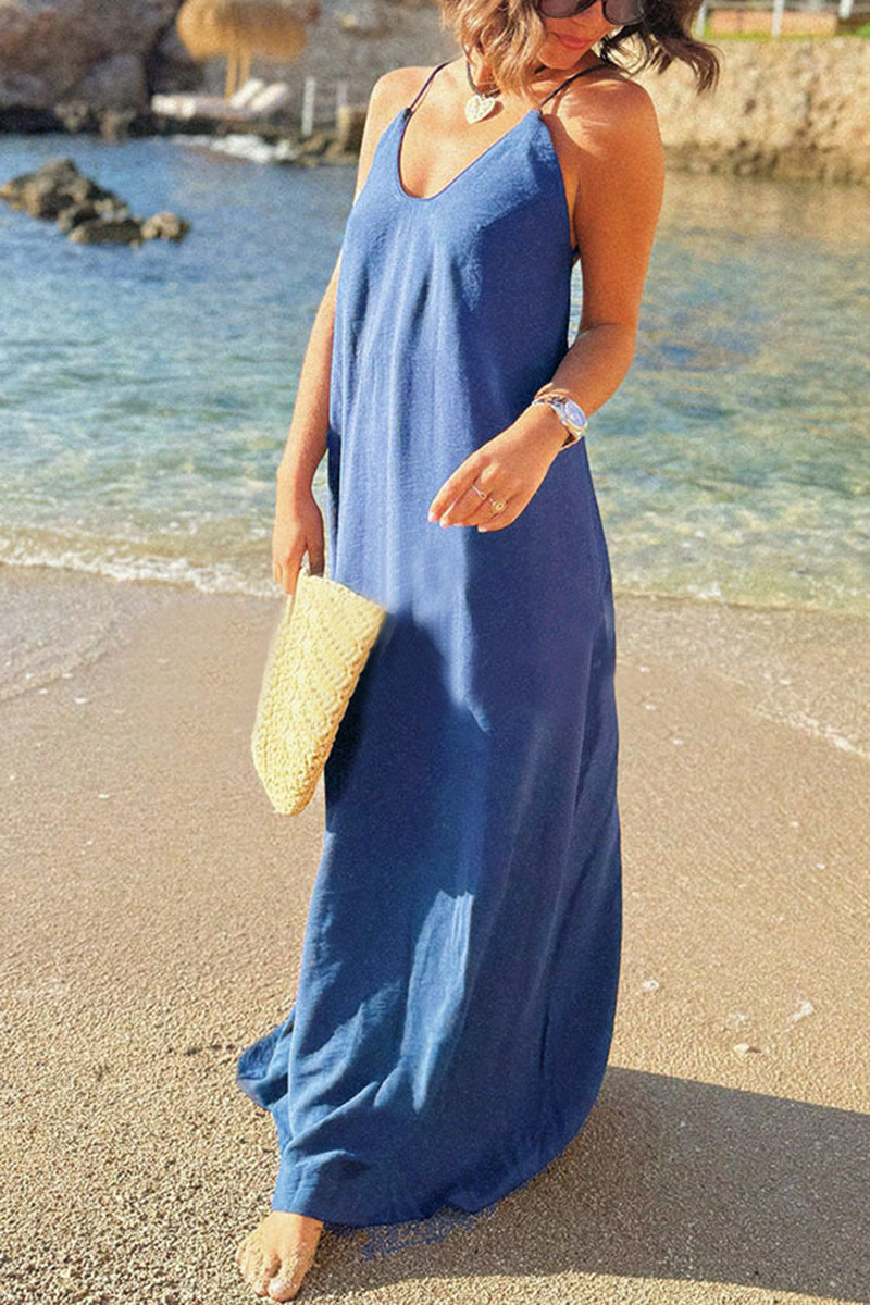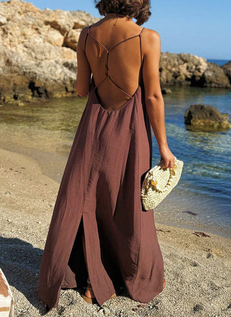 Casual Loose Backless Holiday Dress Beach Midi Skirt