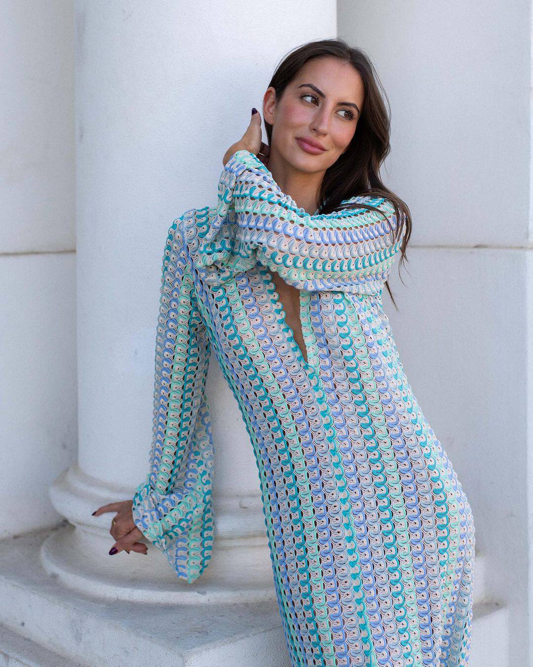 Resort Lace Beach Dress V Neck Hollow Slit One Piece