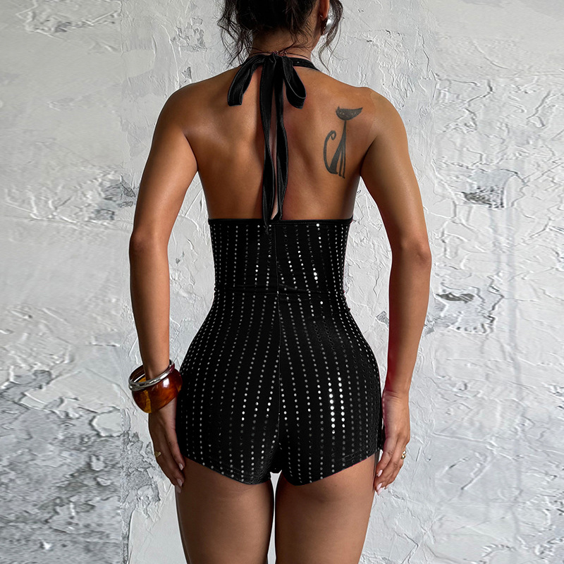 Women's Clothing Sexy Slim Fit Broken Diamond Rhinestone Deep V Jumpsuit