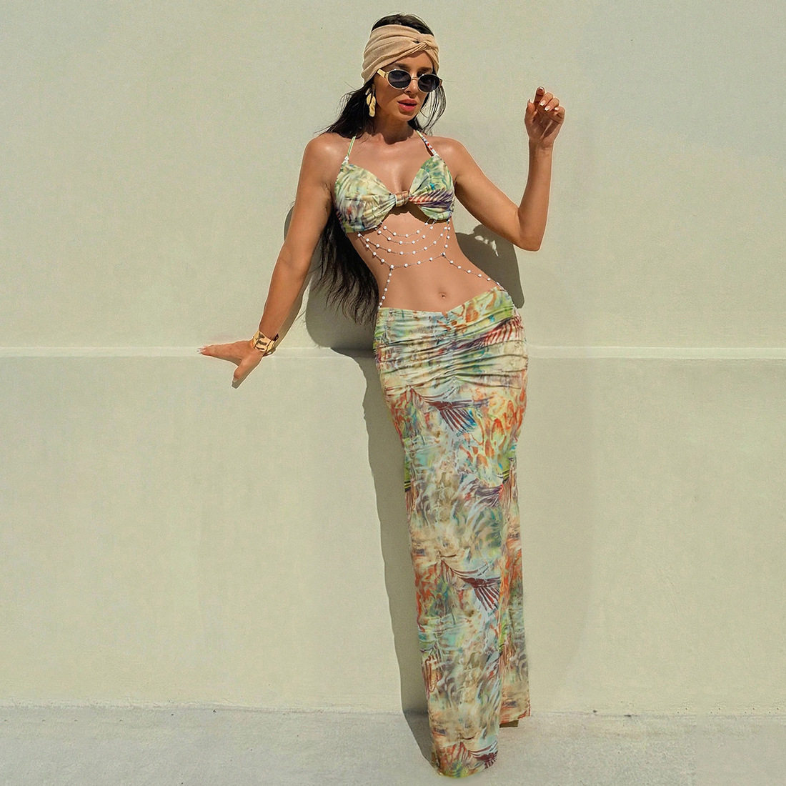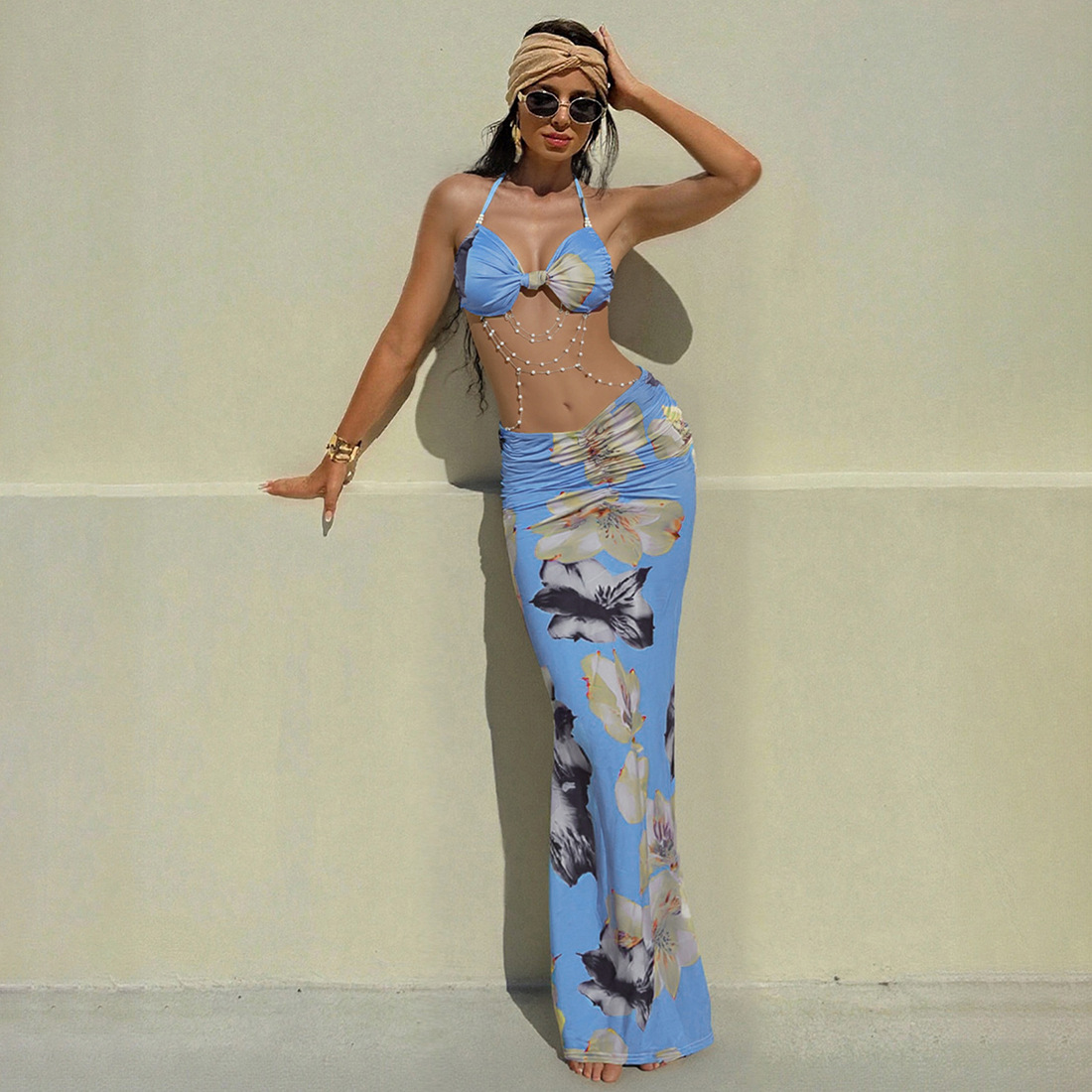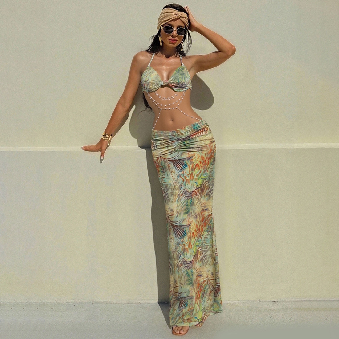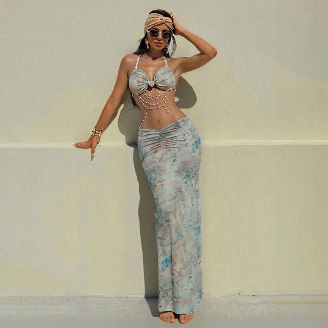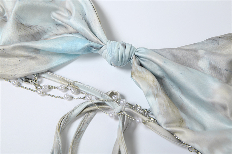 Women's Halterneck Lace-up Bead Chain Decoration Slim Backless Sexy Hottie Dress