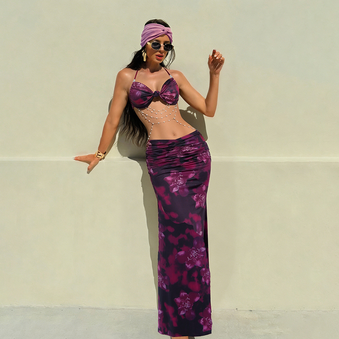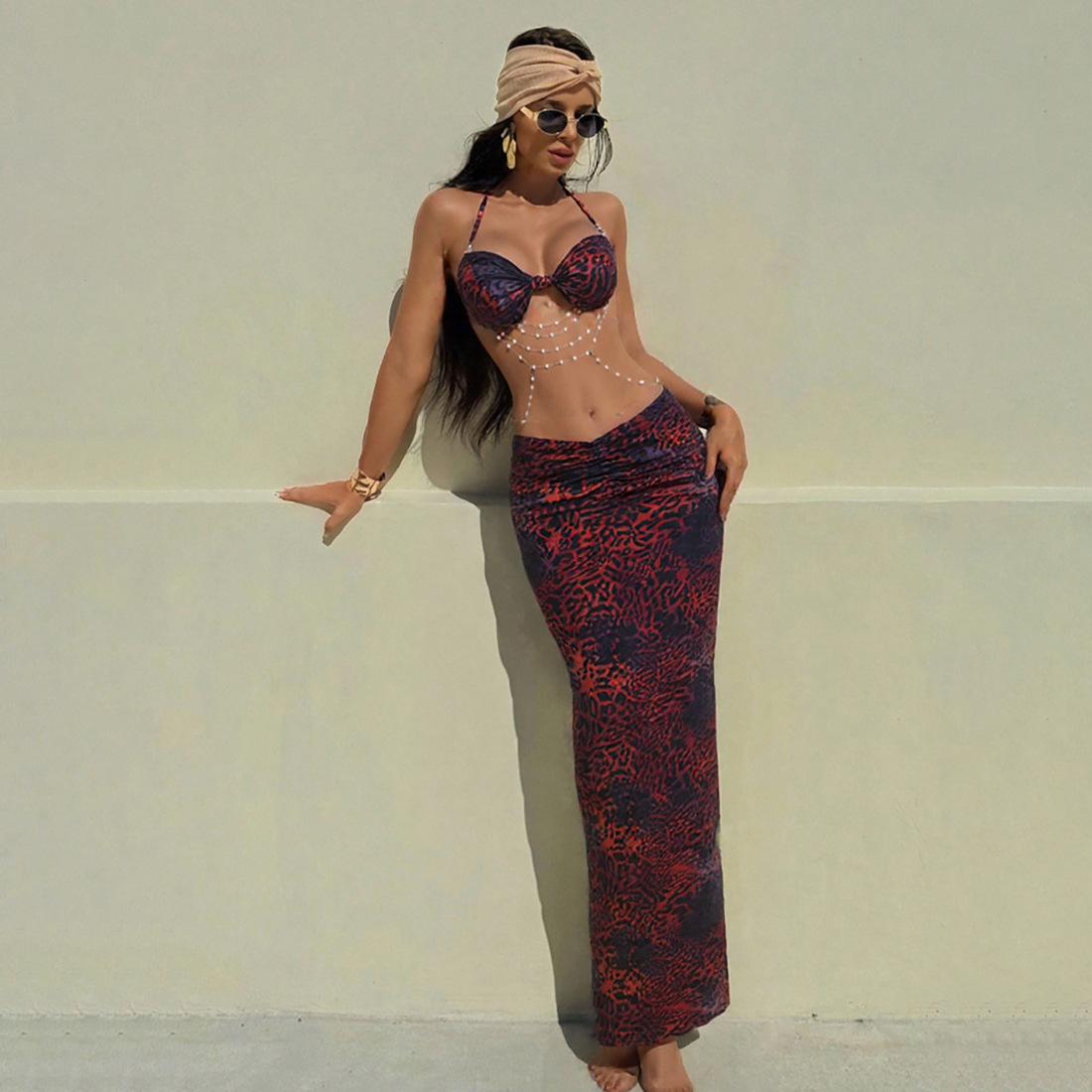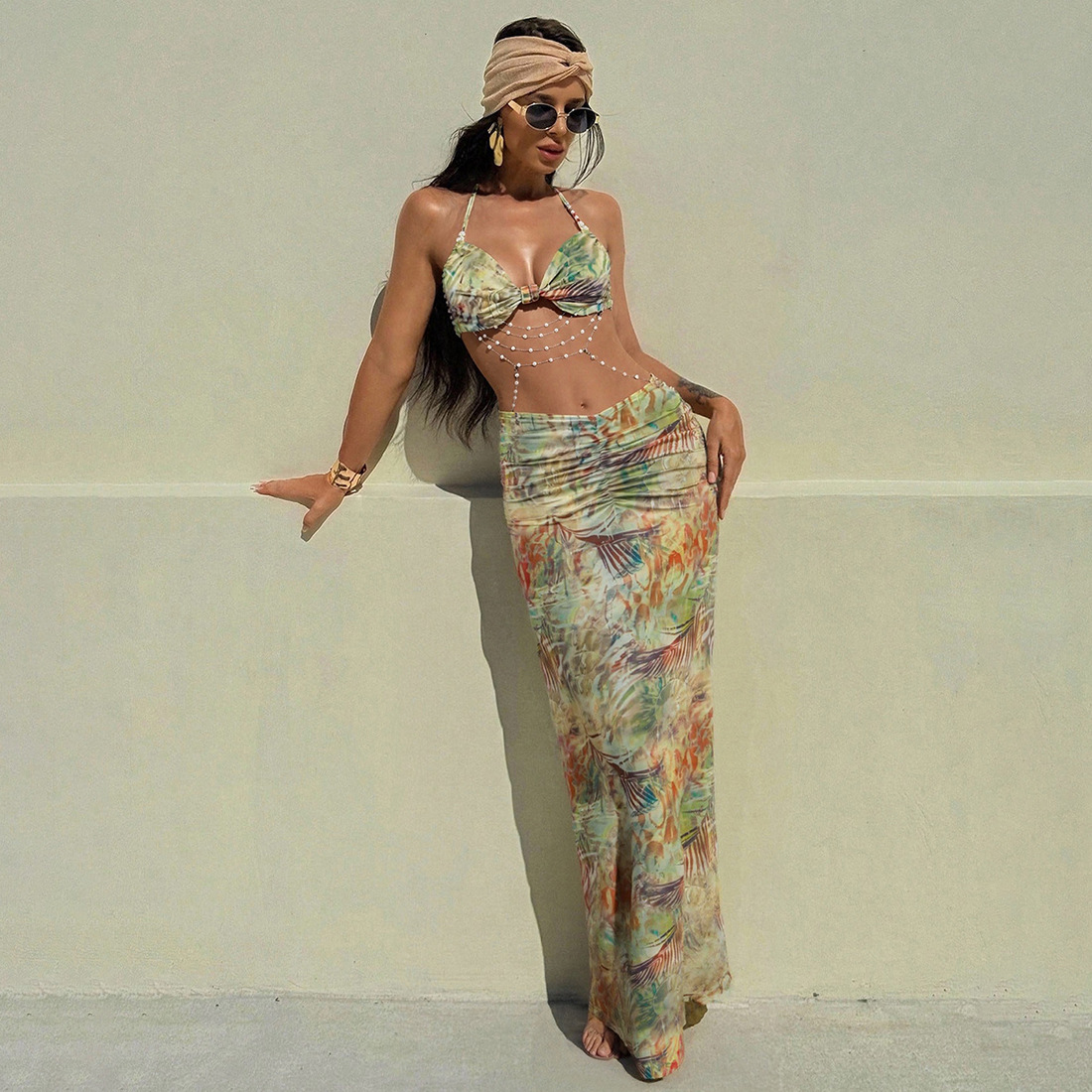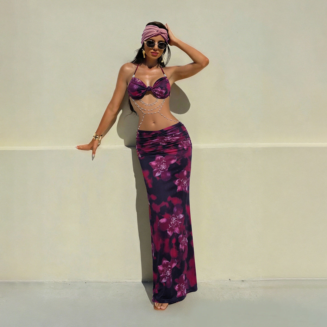 Women's Halterneck Lace-up Bead Chain Decoration Slim Backless Sexy Hottie Dress