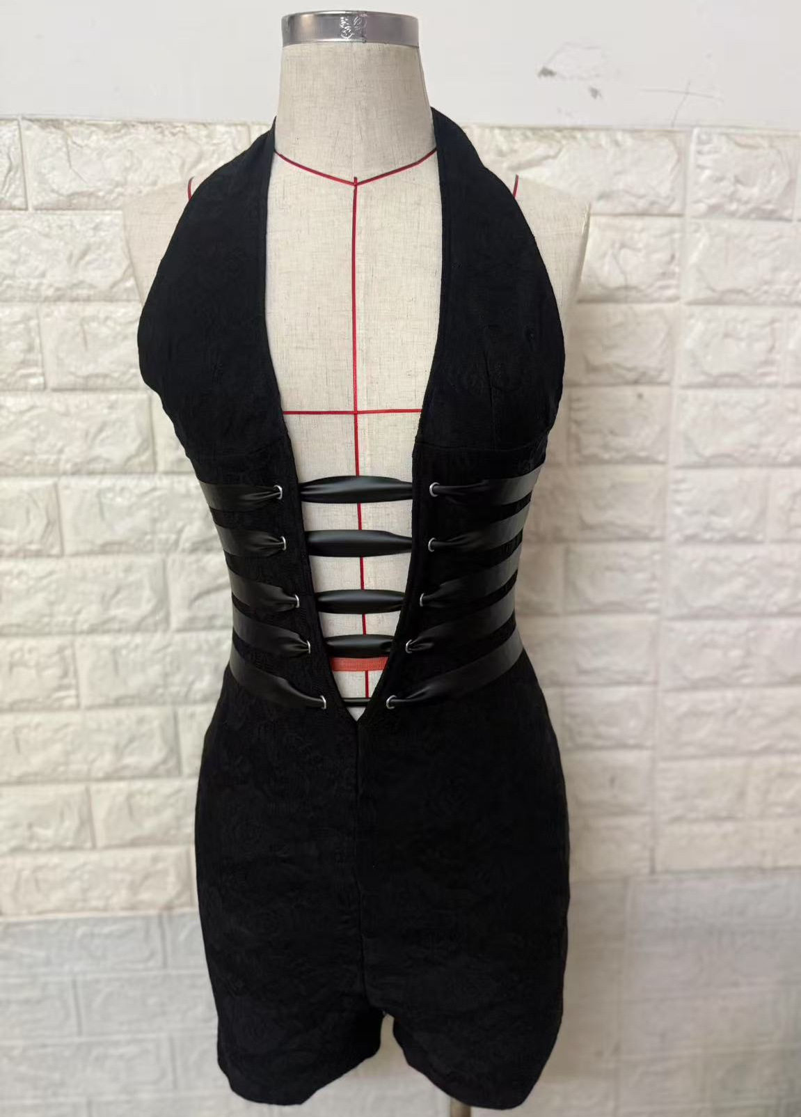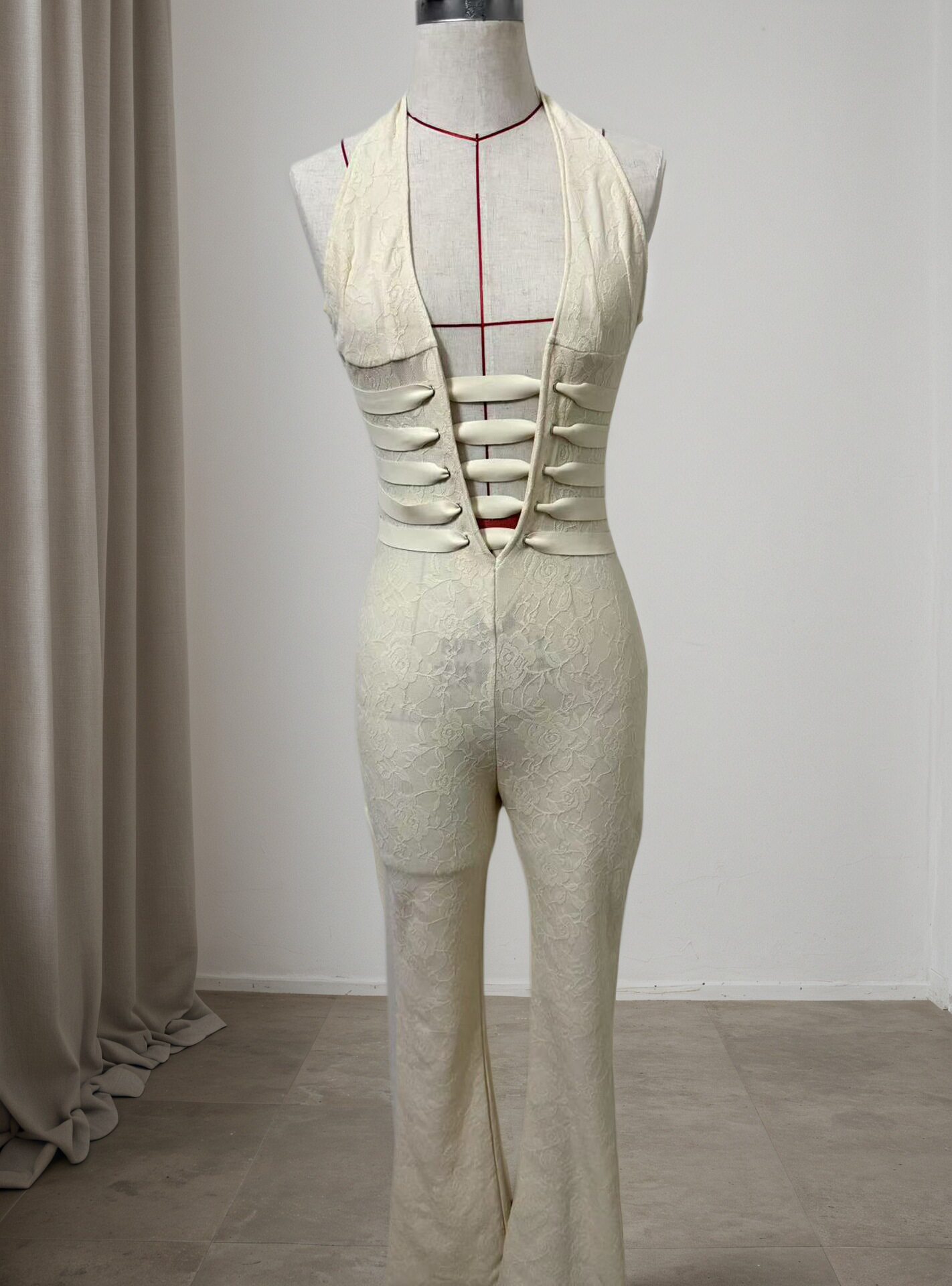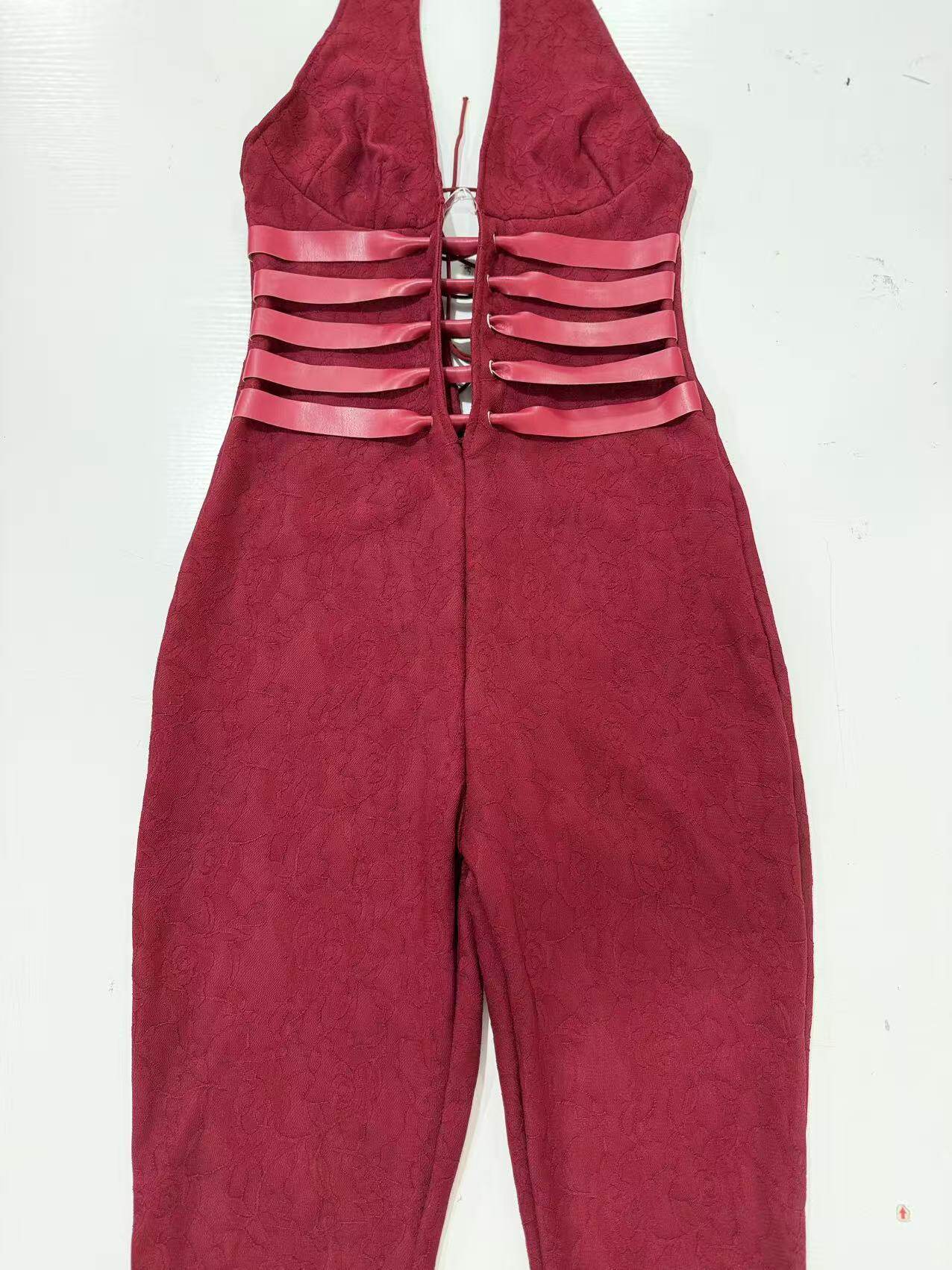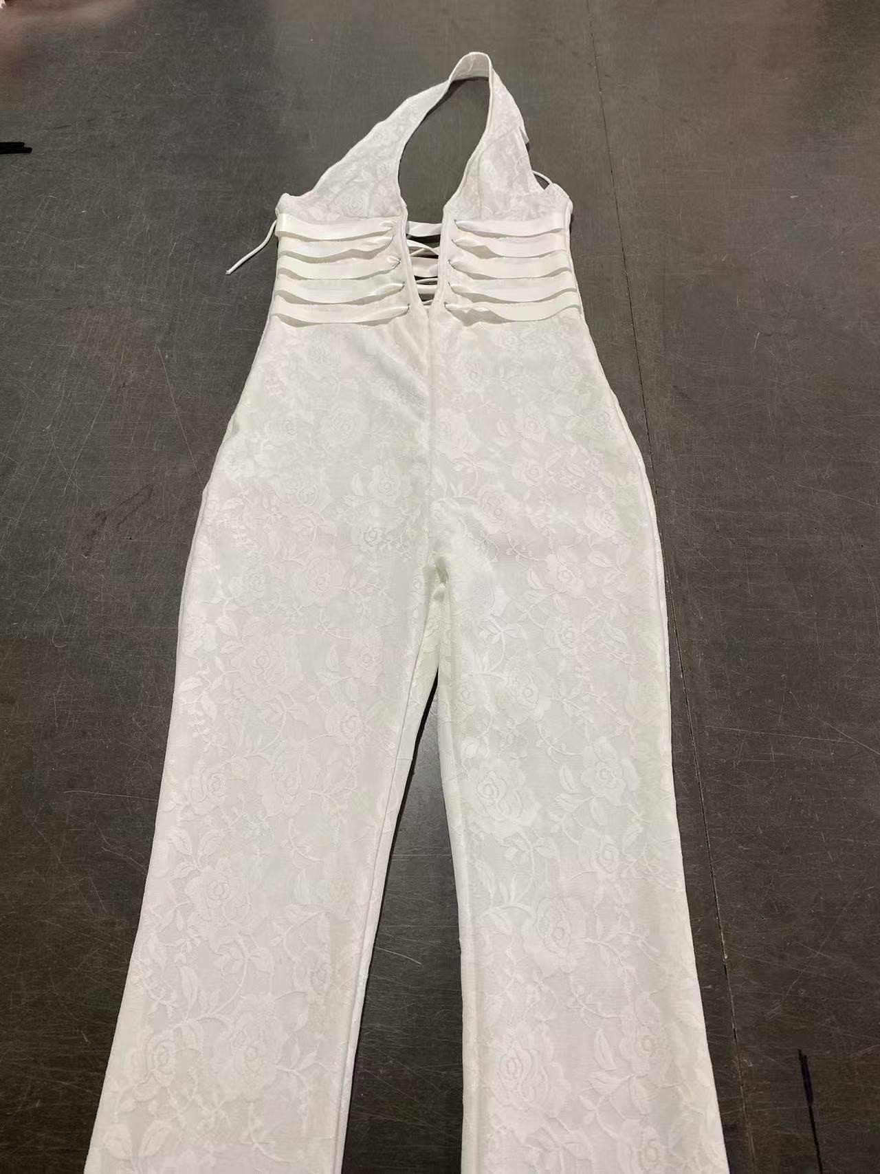 2026 Women's Clothing Sexy Lace Trousers Deep V Strappy Halter Neck Resort Style Jumpsuit