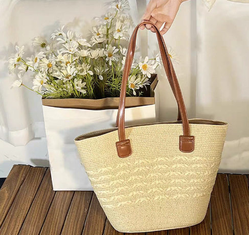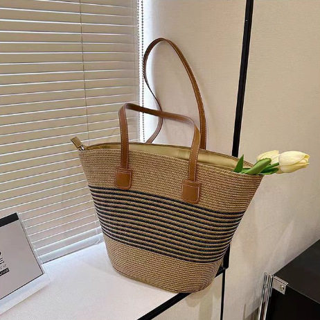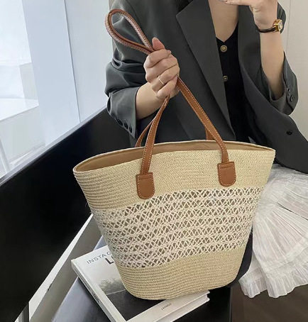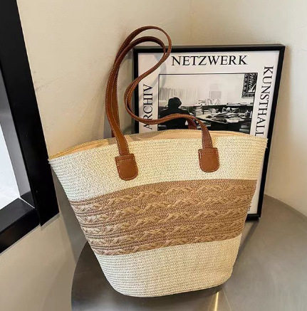Handmade Straw Woven Bag Women's Large Capacity Temperament Portable Shoulder Underarm Beach Bag