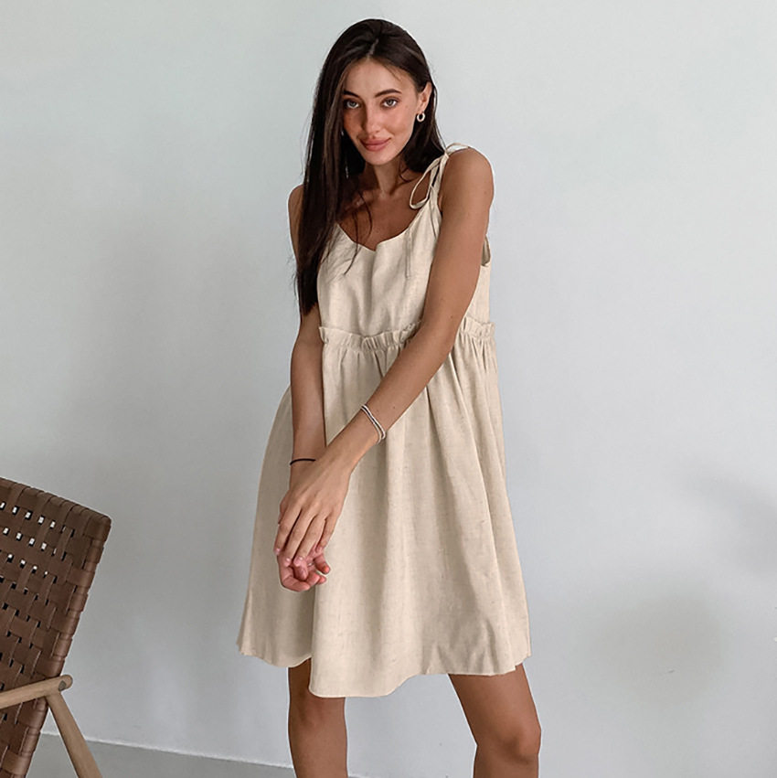 French Style Blue Floral Print Tie Shoulder Cami Dress