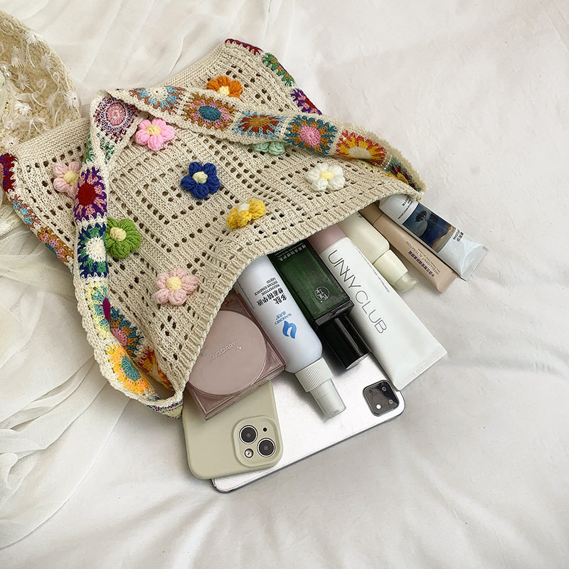 Flower Hand Woven Beach Bag Niche Versatile Single Shoulder Crossbody Bag