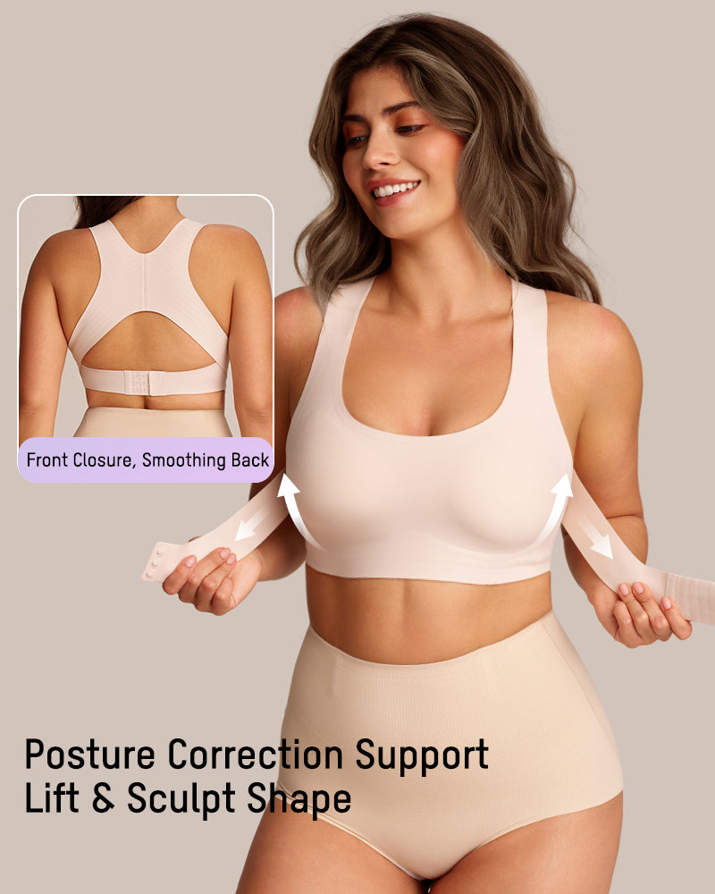 Front Closure Cross-Back Wireless Posture Bra