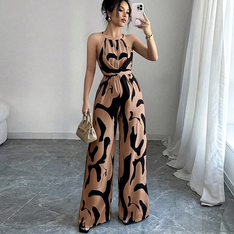 Suspender Jumpsuit Summer Milk Pattern Lace-up Halter Jumpsuit